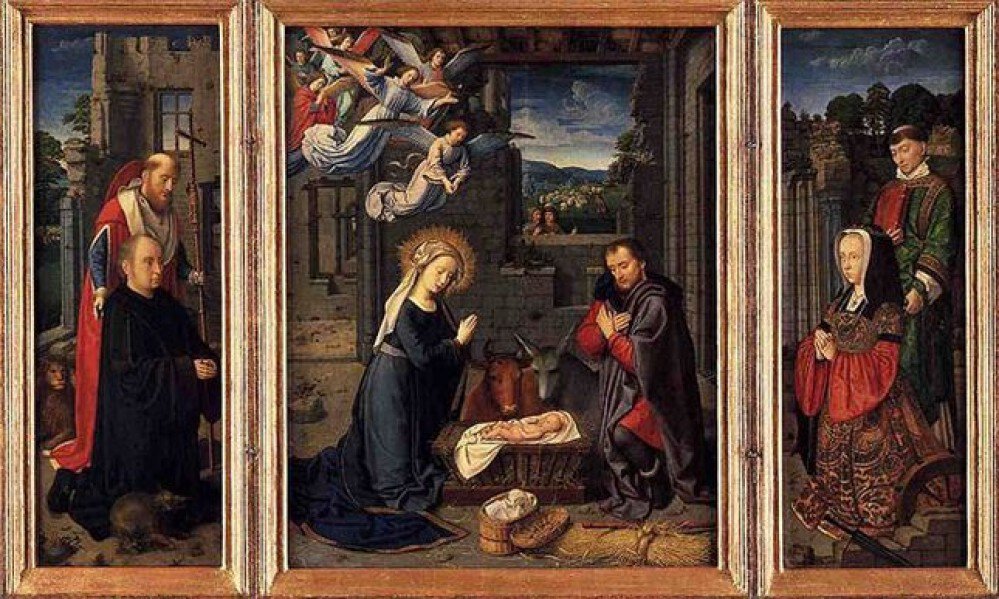 Triptyque peint dans la tradition flamande, avec des influences visibles de la haute renaissance italienne.