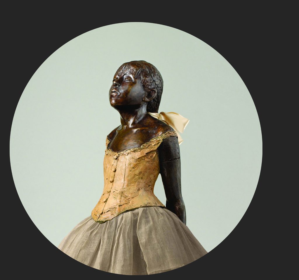 La vue du peintre Degas à faiblit à l’âge de cinquante ans, il fut forcé de s’en remettre de plus en plus à son toucher, et il trouva la solution dans la sculpture. Bien que ne laissant voir ses oeuvres à presque personne dans la dernière période de sa vie, il décida tout de meme, après avoir travaillé deux ans à la réalisation de la Petite Danseuse, de l’envoyer à l’exposition des impressionistes à Paris.