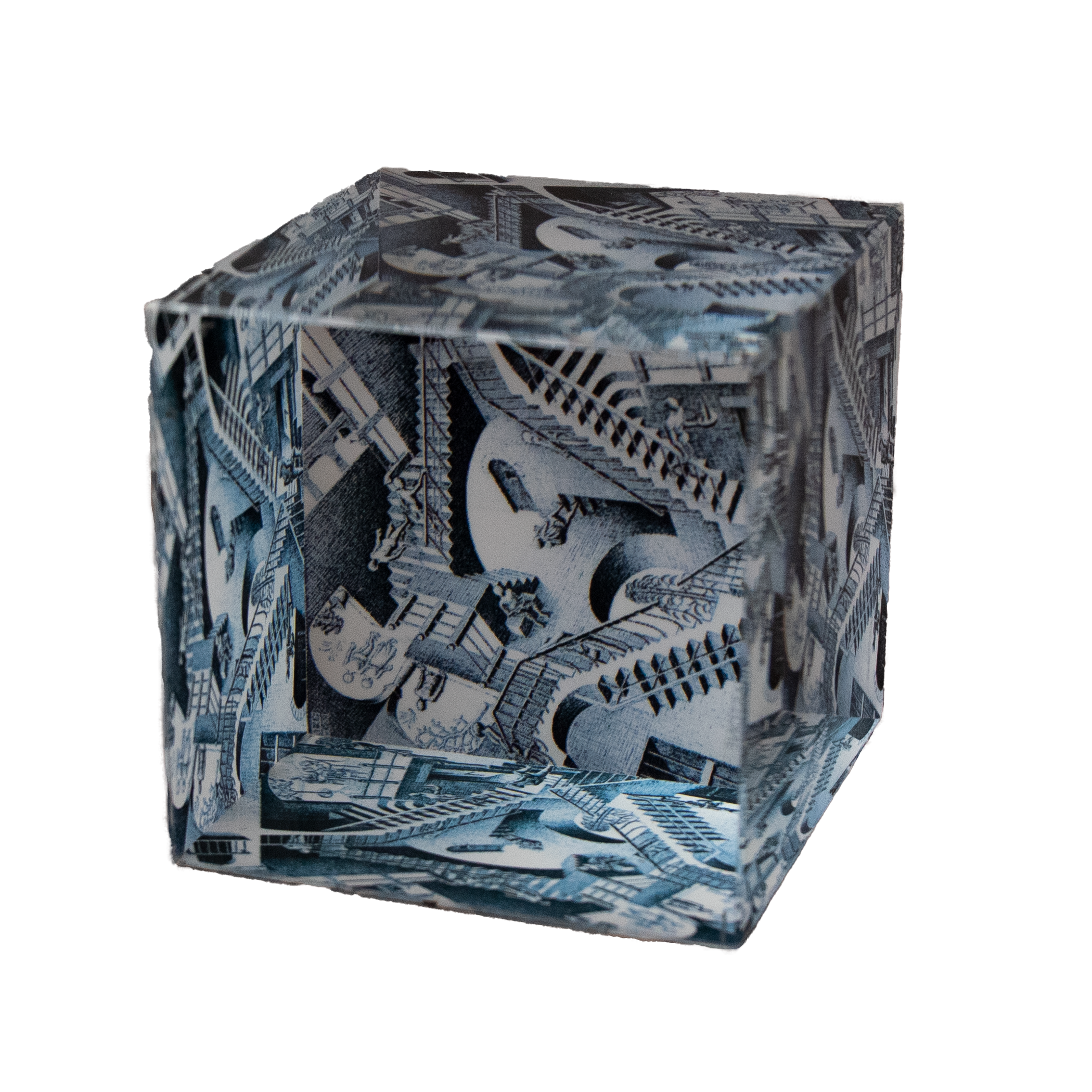 Apportez un morceau d’art époustouflant, inspiré des mathématiques, chez vous avec ce magnifique presse-papiers Relativité de notre collection QB-Art. Le chef-d’œuvre emblématique de M.C. Escher prend vie dans un effet kaléidoscopique captivant qui joue avec la perspective, les lignes et la profondeur.