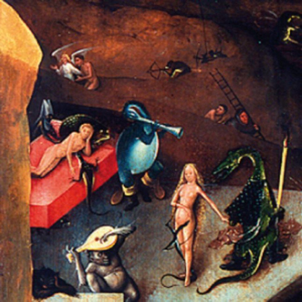 Jérôme Bosch nous met en garde contre les conséquences d’une vie corompue. La chute des anges rebelles sur le panneau de gauche marque le début de la fin. On note ensuite quelques élus au paradis, avec en dessous tout le reste, qui doit bientôt subir les tortures les plus cruelles.