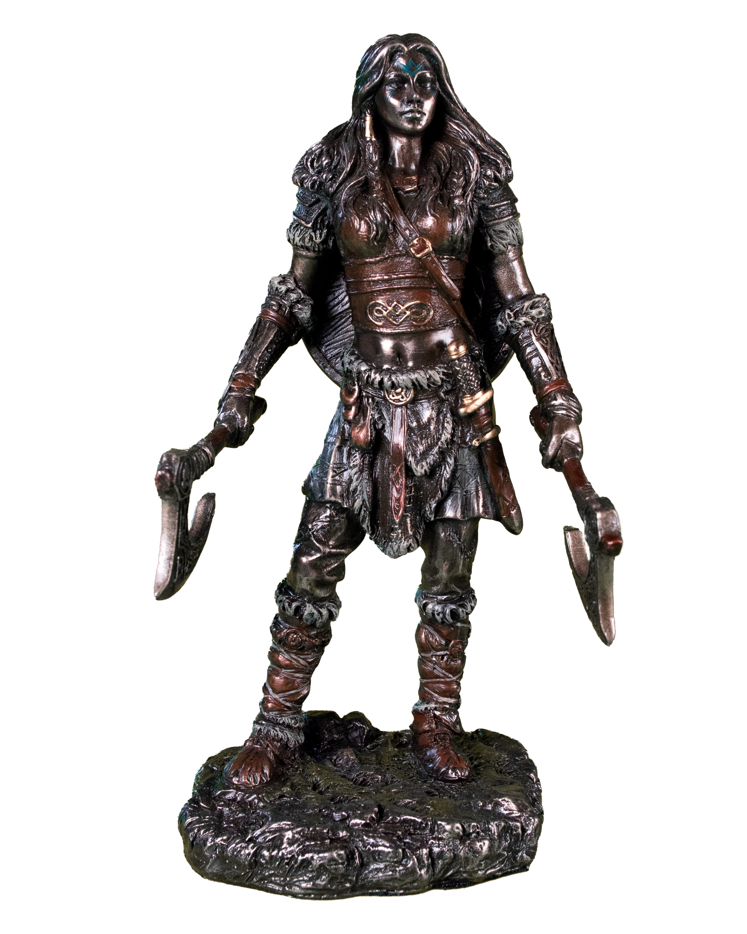 Guerrière Viking aux Doubles Haches – Force et Héroïsme en Bronze