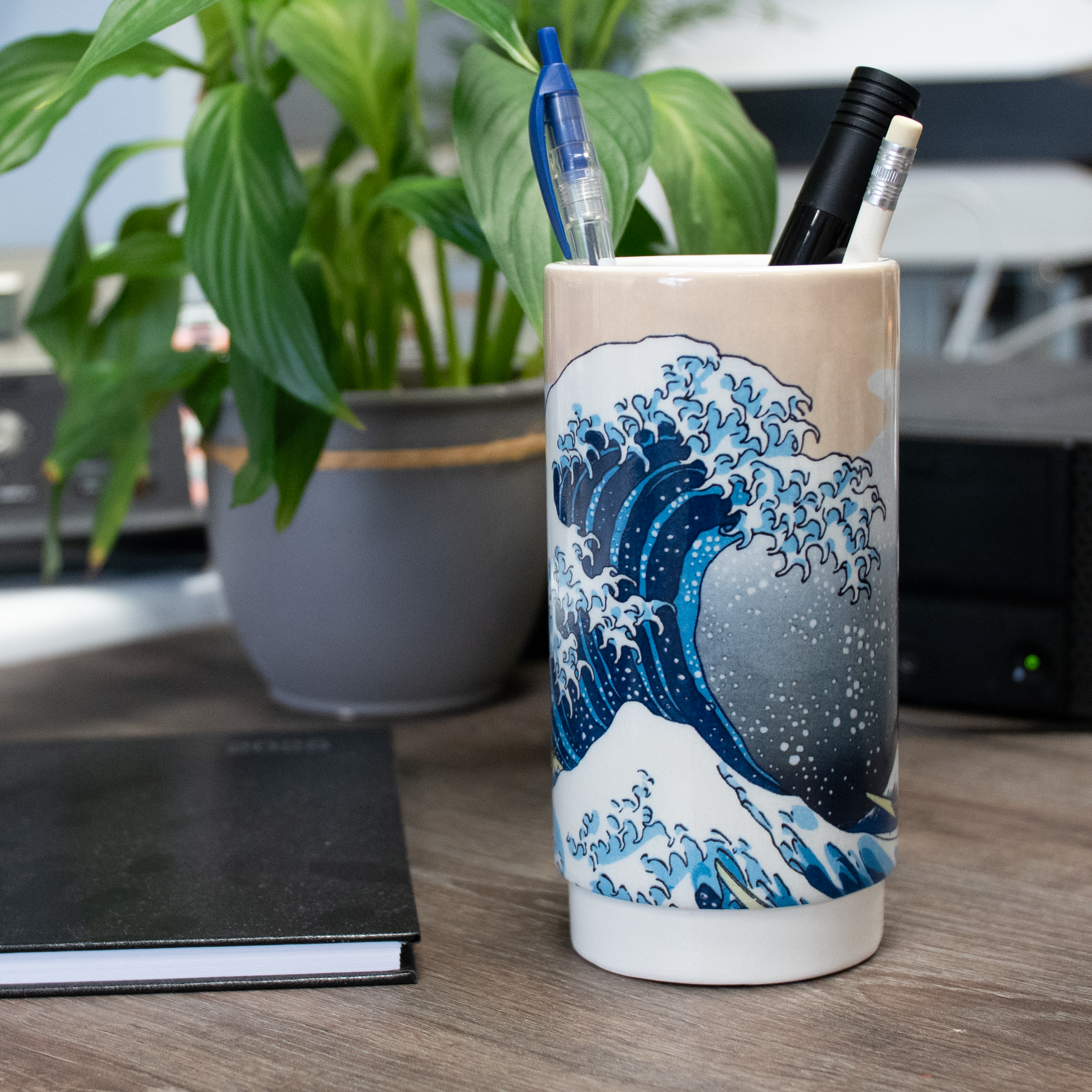 Ce porte-stylos élégant offre un espace pour tous vos stylos, crayons et marqueurs. Admirez chaque jour l’un des chefs-d’œuvre les plus célèbres de l’art japonais.