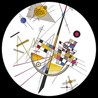 L’artiste aux multiples talents Kandinsky a la réputation d’être le plus grand théoricien de l’art abstrait. La reproduction d’objets reconnaissables faisait obstacle à sa quête de spiritualité. C’est inspiré par Schönberg qu’il élabora son influente théorie sur les tonalités des couleurs : Chaque couleur parle sa propre langue, avec sa propre forme et son propre esprit. Il combine les couleurs en une harmonie qui provoque chez le spectateur «une vibration intérieure ».