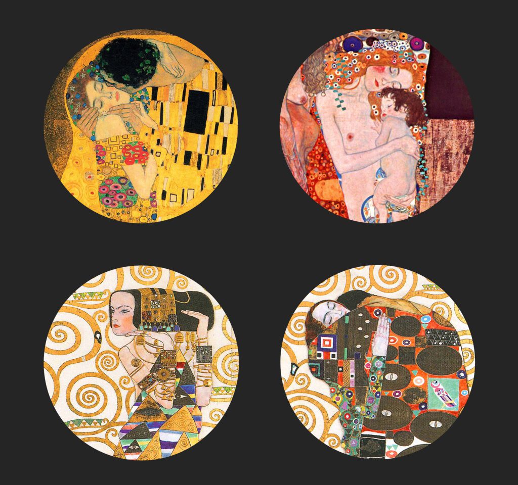 Membre éminent du groupe d'artistes innovateur Sezession, Klimt est considéré comme l'ún des principaux précurseurs de la peinture moderne. Son Art nouveau ornemental évoque en outre de façon irrésistible l'ambiance fin de siècle de Vienne: élitaire, bourgeoise etlibérale, parfois décorative, aux plaisirs décadents. La combinaison entre le style monumental, lárt décoratif presque byzantin et la symbolique classique débouche sur une oeuvre très reconnaissable, élaborée sur la toile de fond du romantisme caractéristique de son époque.