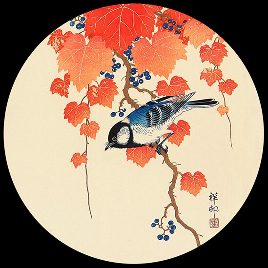 L’artiste Japonais Koson était membre du Shin-hanga. Ce mouvement donne un second souffle à l’art des estampes traditionnelles (Ukyio-e). Il s’est consacré aux estampes populaires « kashÅ-ga », représentant des scènes d’oiseaux et de fleurs.