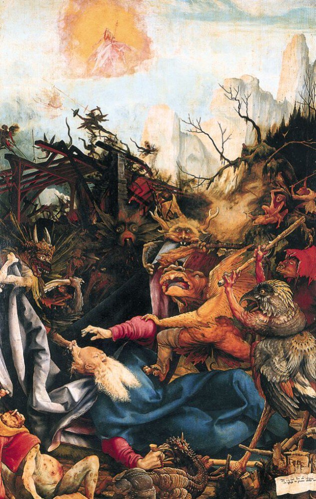 L’ermite Antoine est harcelé par les forces des ténèbres. Panneau droit de l’autel d’Isenheim.