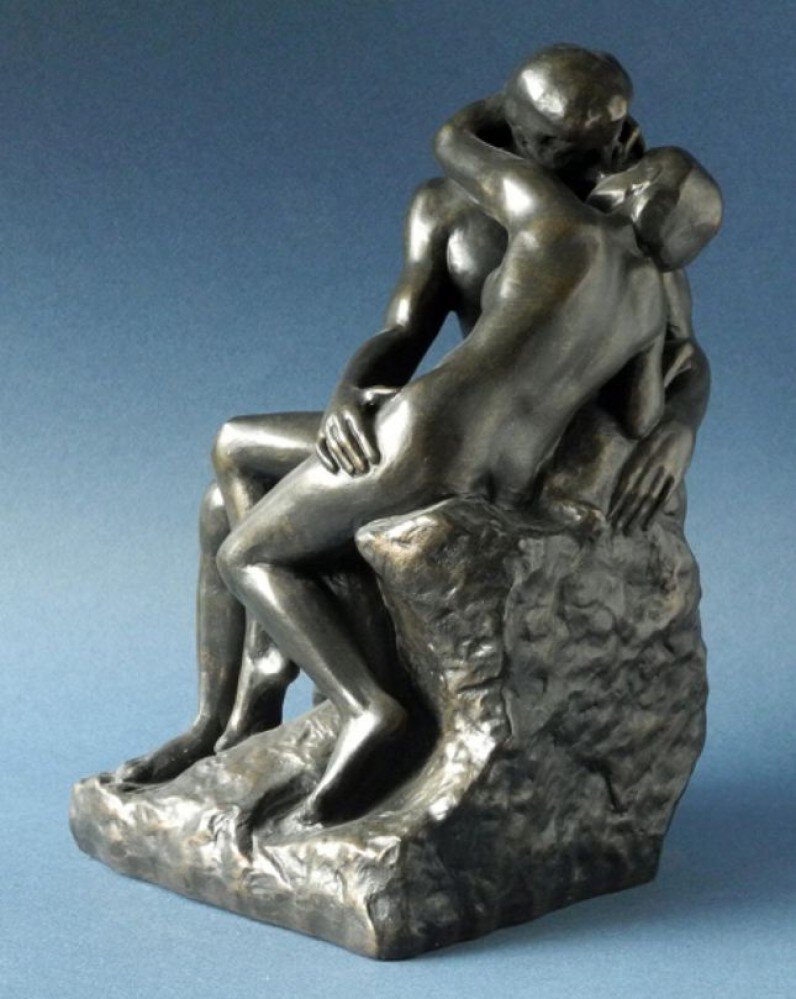Tout comme Le Penseur, Le baiser est emprunte aux Portes de l’Enfer, l’œuvre de Rodin. Les personnages sont a l’origine bases apres le mariage de Francesca avec le frere de Paolo. La statue du Baiser donne finaliment une autre impression et exprime plus un amour libre et déclaré que le desespoir. Bien que tres sensuelle, l’œuvre dégage également une certaine douceur, un certain charme innocent. Le Baise a été envoyé par le gouvernment français pour être exposée lors de la World Columbian Fair à Chicago, mais les autorités américaines le trouverent trop osee pour l’exposer au grand public. Elle fut placee dans un local privé uniquement accessible sur autorisation speciale. C’est peut-être le caractère secret de cette exposition qui fit le succes du Baisir, qui reste encore aujourd’hui l’une des œuvrs les plus populaires de Rodin.
