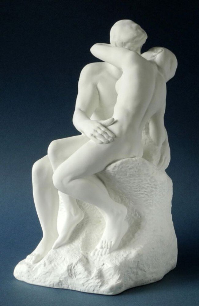 Tout comme Le Penseur, Le baiser est emprunte aux Portes de l’Enfer, l’œuvre de Rodin. Les personnages sont a l’origine bases apres le mariage de Francesca avec le frere de Paolo. La statue du Baiser donne finaliment une autre impression et exprime plus un amour libre et déclaré que le desespoir. Bien que tres sensuelle, l’œuvre dégage également une certaine douceur, un certain charme innocent. Le Baise a été envoyé par le gouvernment français pour être exposée lors de la World Columbian Fair à Chicago, mais les autorités américaines le trouverent trop osee pour l’exposer au grand public. Elle fut placee dans un local privé uniquement accessible sur autorisation speciale. C’est peut-être le caractère secret de cette exposition qui fit le succes du Baisir, qui reste encore aujourd’hui l’une des œuvrs les plus populaires de Rodin.