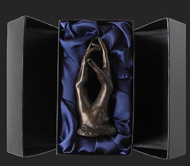 Rodin était fasciné par l’expressivité et la symbolique des mains. Dans sa célèbre sculpture intitulée “La cathédrale”, les mains reflètent par exemple la majestueuse ogive de l’architecture gothique. Ces deux mains élègantes sont une étude pour ‘le secret’, une sculpture en marbre représentant deux mains droites enfermant un ‘secret’ abstrait, rectangulaire.