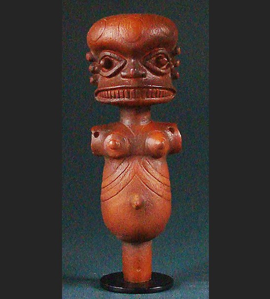 Le grand peule Ibibio vit dans le sud-est du Nigeria entre le delta et la rivière Corss. Cést dans la partie méridionale de cette zone que vivent les Eket Ibibio. La société ekon joue un rôle social important dans la vie quotidienne des Ibibio. Une fois tous les sept ans, l’ekon organise une grandiose fête musicale et théâtrale. Des poupées de bois y sont utilises en tant que marionettes. Les bras séparés sont à cet effet fixés au tronc de la poupées avex un épingle afin de pouvoir bouger. Tout comme les autres statuettes de Ibibio, celles-ci se caractérisent par leurs forms rondes et leur longue range de dents découvertes.