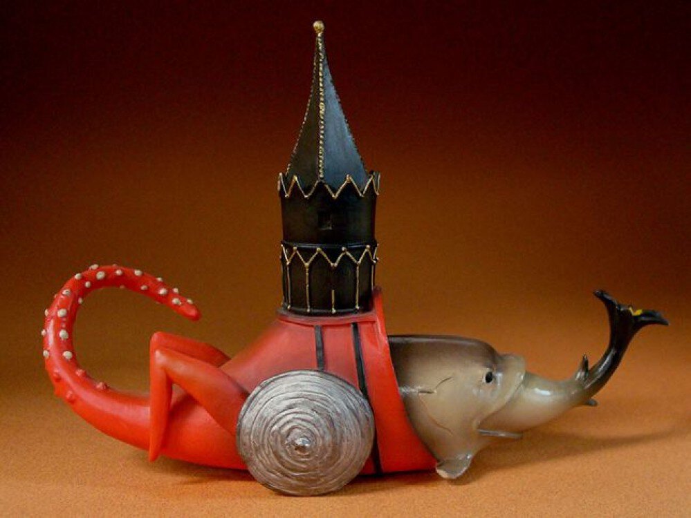 Sur le volet de gauche se trouve ce curieux poisson à sec, avec des caractéristiques architecturales. Il se trouve juste devant le bordel, l’une des tentations auxquelles Saint Antoine résista avec panache.