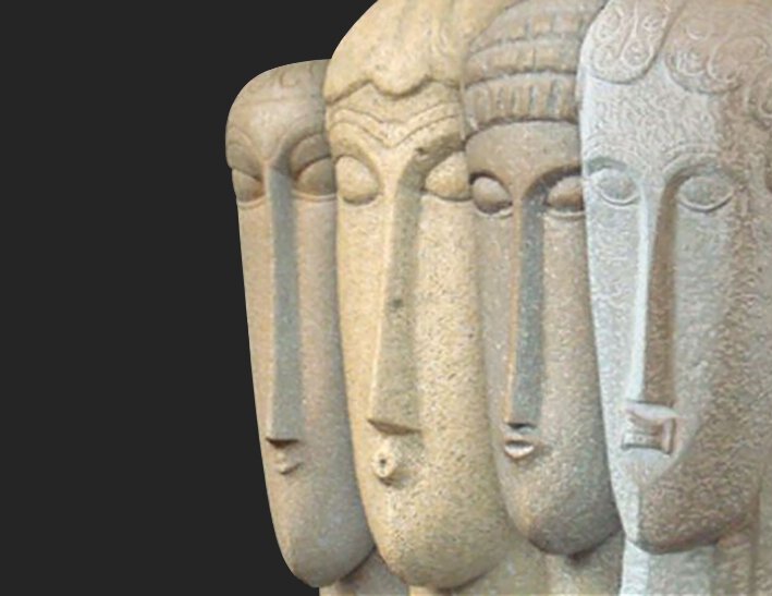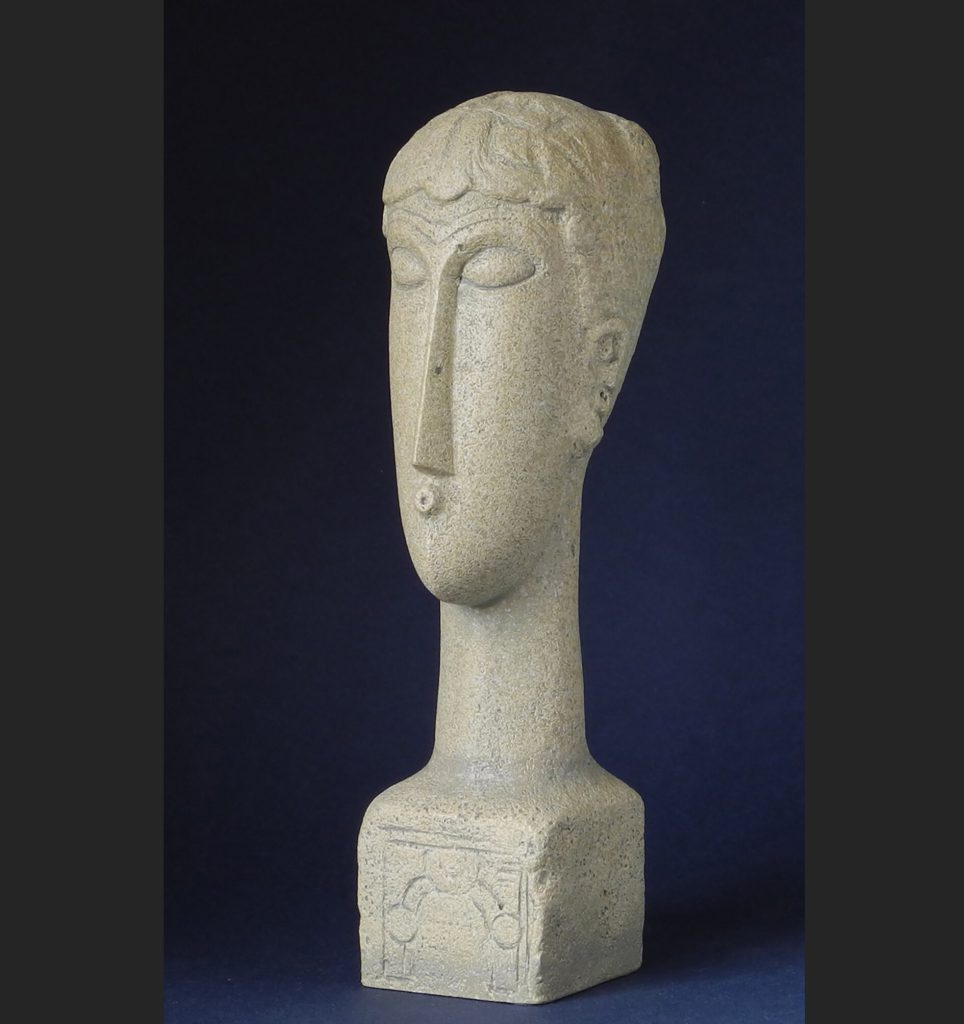 (1913-1915) Encore très jeune, Modigliani allait déjà dans les carrières de marbre de Carrare pour y perfectionner ses talents de sculpteur, fasciné plus tard par les sculptures traditionelles d'Afrique et d'Océanie. Ces influences se retrouvent immédiatement dans ces têtes.