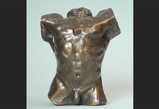Lorsque Rodin se lançait dans la sculpture d’un corps humain, il commençait par le torse, car c’est de là que jaillit tout mouvement. Cet impressionnant torse aux muscles très prononcés a été utilisé pour trois personnages de La Porte de l’Enfer, dont l’Homme qui tombe est le plus remarquable. Les curieuses exubérances en forme de cales servaient au montage de la statue. On ne sait pas pourquoi Rodin les a laissées subsister lorsque le torse fut plus tard exposé seul.