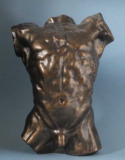 Lorsque Rodin se lançait dans la sculpture d’un corps humain, il commençait par le torse, car c’est de là que jaillit tout mouvement. Cet impressionnant torse aux muscles très prononcés a été utilisé pour trois personnages de La Porte de l’Enfer, dont l’Homme qui tombe est le plus remarquable. Les curieuses exubérances en forme de cales servaient au montage de la statue. On ne sait pas pourquoi Rodin les a laissées subsister lorsque le torse fut plus tard exposé seul.